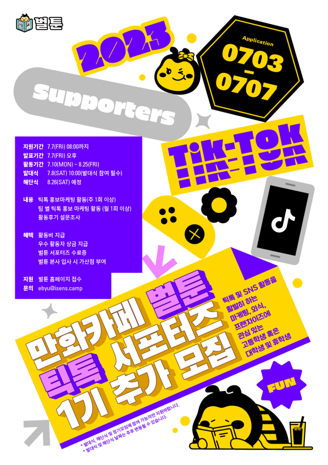 만화카페 벌툰 틱톡 서포터즈 꿀벌이 1기 추가 모집