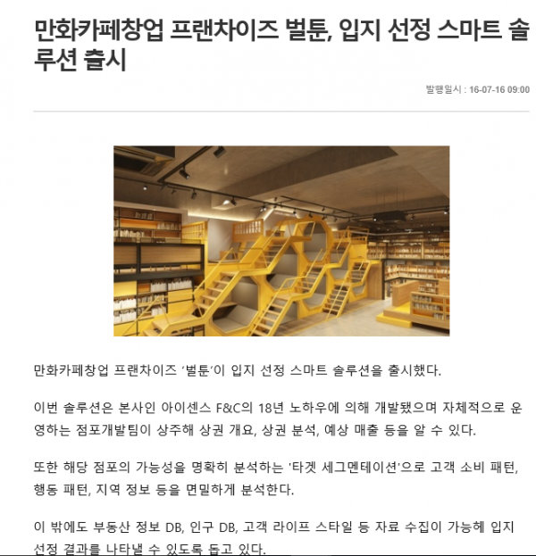 만화카페창업 프랜차이즈 벌툰, 입지 선정 스마트 솔루션 출시 페이지 정보 작성자 벌툰 작성일16-07-18 10:29 조회539회 댓글0건 관련링크 http://www.nextdaily.co.kr/news/article.html?id=20160715800029 826회 연결 이전글 다음글 목록 본문 . 댓글목록 등록된 댓글이 없습니다. 이전글 다음글 목록