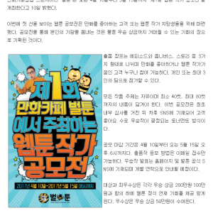 만화카페 벌툰, 제1회 웹툰 작가 공모전 개최